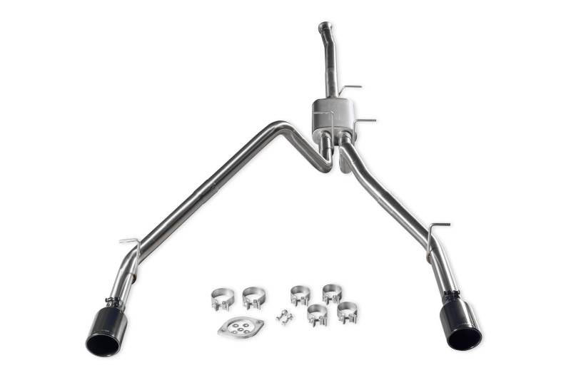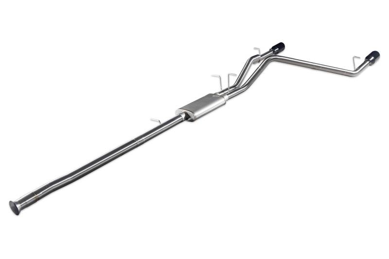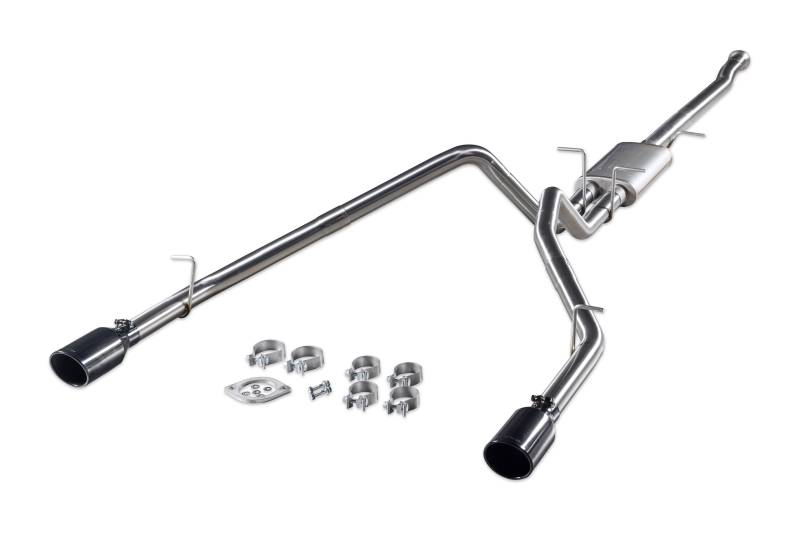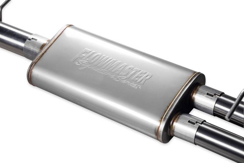 Flowmaster's® Signature Series Cat-back exhaust system is designed specifically for the 2019-2024, 2026 RAM truck (new body) with 5.7L Hemi and factory dual exhaust. Features include full brushed 304 stainless steel construction, large 3.00-inch flanged inlet pipe flowing in the single inlet/dual outlet Signature Series "straight-through" muffler for great sound and maximum performance. This premium exhaust system is TIG welded for a stronger, more precise weld that looks as good as this system sounds. The dual 2.50-inch mandrel bent tailpipes clear the factory hitch and spare tire and exit out through the factory rear bumper cutouts with large 4.50-inch diameter PVD coated black chrome 304S stainless steel tips giving your RAM that custom look that goes hand in hand with that deep performance Signature Series sound. Max dyno gains of 13 hp and 13 lb-ft at the rear wheels. The system uses all the factory hanger locations and connections for an easy installation that you can do at home. Includes installation instructions and all necessary hardware. Note: This system fits all wheelbases, both two and four wheel drive models along with all cab and bed configurations.