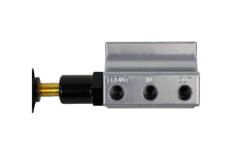 The Remaster specific adjustable proportioning valve is machined to mount directly under the Remaster for a clean, compact unit. The ReMaster valve is available in both left and right port configuration with in/out ports for the rear which the valve controls as well as a pass through for the front to make plumbing simple and clean. Just like the ReMaster master cylinder, this valve offers removable seats, and can be used with inverted flare fittings or straight banjo fittings. The valve includes 4) brass seats and 4) 3/8” x 24 tube nuts. Available in black, gray, or polished finishes and left or right port configuration to match the ReMaster.