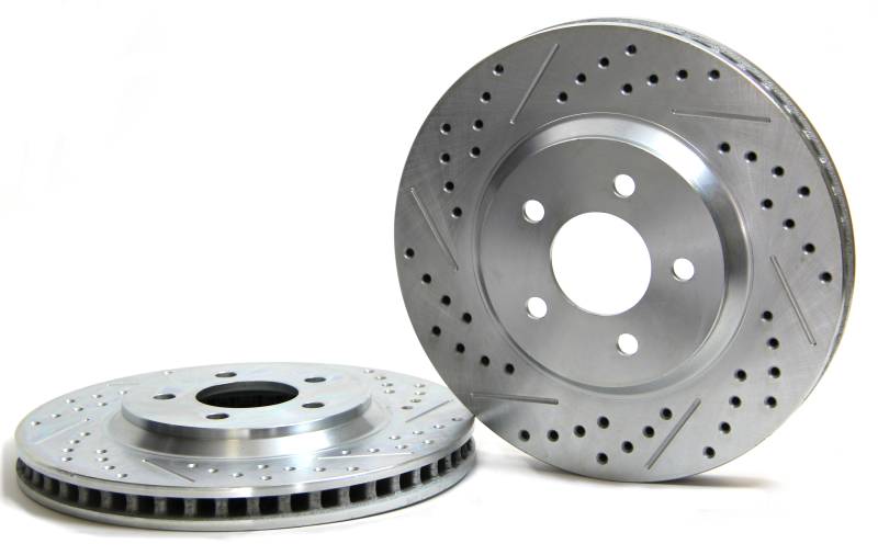 Baer Claw performance rotors are a great way to improve your vehicles braking performance and overall appearance. The kit includes a pair of direct replacement rotors with a cross-drilled and slotted friction surface that allows an escape route for the gasses and dust that form between the pad and rotor during braking providing a more consistent pedal feel and reduced brake fade. Each pair of rotors are zinc-plated providing a brilliant finish behind open center wheels.
