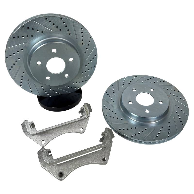 Upgrade your stopping power without breaking the bank with the Baer Big Claw brake kit. The Big Claw kit includes a pair of larger than stock diameter rotors (up to 2 inches larger on some applications) that are purpose cast with directional cooling vanes, along with a pair of new caliper relocation brackets to move the calipers outward to accommodate the larger rotors while maintaining OE Pad and hardware fitment. Independent third-party testing showed up to a 49% gain in braking effectiveness due to the increased brake torque and leverage from the larger diameter rotors, along with as much as a 200-degree reduction in brake rotor temperatures vs OE in extreme conditions due in part to the curved vane design. Together, these equal improved stopping distances, reduced brake fade and enhanced braking confidence all at a fraction of the cost of other leading replacement kits. *** Because of the abundance of wheel companies and styles, it is impossible for Baer to guarantee the fit of the Big Claw rotors into a specific wheel. To verify fitment, we recommend using the template specific to the system you are interested in and compare it to the wheel of choice, including spare tire/wheel.***