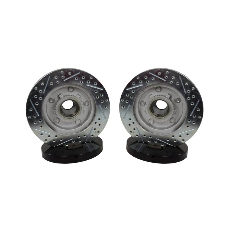 Baer Claw performance rotors are a great way to improve your vehicles braking performance and overall appearance. The kit includes a pair of direct replacement rotors with a cross-drilled and slotted friction surface that allows an escape route for the gasses and dust that form between the pad and rotor during braking providing a more consistent pedal feel and reduced brake fade. Each pair of rotors are zinc-plated providing a brilliant finish behind open center wheels.