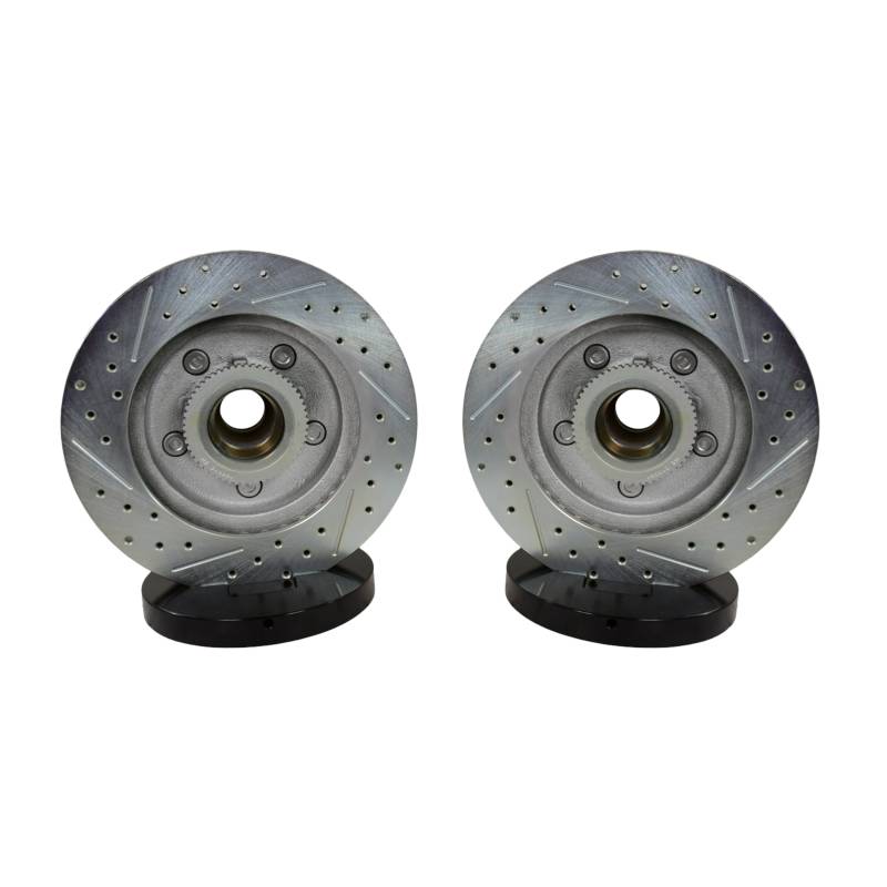 Baer Claw performance rotors are a great way to improve your vehicles braking performance and overall appearance. The kit includes a pair of direct replacement rotors with a cross-drilled and slotted friction surface that allows an escape route for the gasses and dust that form between the pad and rotor during braking providing a more consistent pedal feel and reduced brake fade. Each pair of rotors are zinc-plated providing a brilliant finish behind open center wheels.