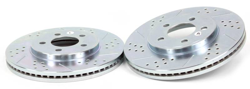 Baer Claw performance rotors are a great way to improve your vehicles braking performance and overall appearance. The kit includes a pair of direct replacement rotors with a cross-drilled and slotted friction surface that allows an escape route for the gasses and dust that form between the pad and rotor during braking providing a more consistent pedal feel and reduced brake fade. Each pair of rotors are zinc-plated providing a brilliant finish behind open center wheels.