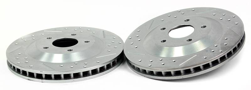 Baer Claw performance rotors are a great way to improve your vehicles braking performance and overall appearance. The kit includes a pair of direct replacement rotors with a cross-drilled and slotted friction surface that allows an escape route for the gasses and dust that form between the pad and rotor during braking providing a more consistent pedal feel and reduced brake fade. Each pair of rotors are zinc-plated providing a brilliant finish behind open center wheels.