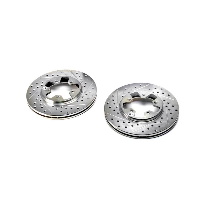 Baer Claw performance rotors are a great way to improve your vehicles braking performance and overall appearance. The kit includes a pair of direct replacement rotors with a cross-drilled and slotted friction surface that allows an escape route for the gasses and dust that form between the pad and rotor during braking providing a more consistent pedal feel and reduced brake fade. Each pair of rotors are zinc-plated providing a brilliant finish behind open center wheels.