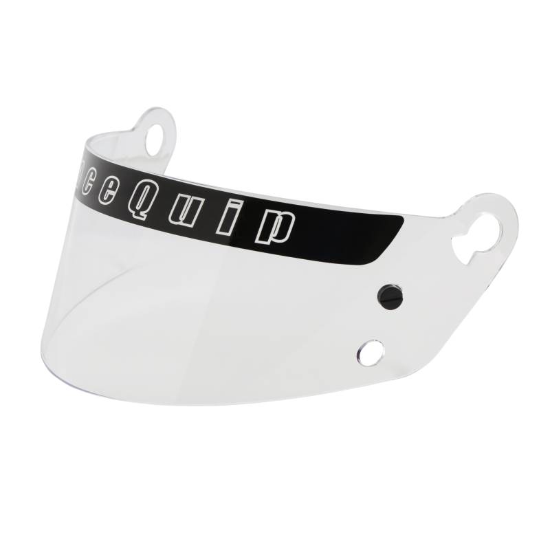 This clear replacement polycarbonate face shield is designed to fit RaceQuip SA-2005, SportMod, and SFI 2005 Youth Series Helmets. RaceQuip face shields (sometimes called helmet visors) are formed from 3mm thick distortion-free high strength polycarbonate. A Visor Strip and Tear-Off Posts are included.