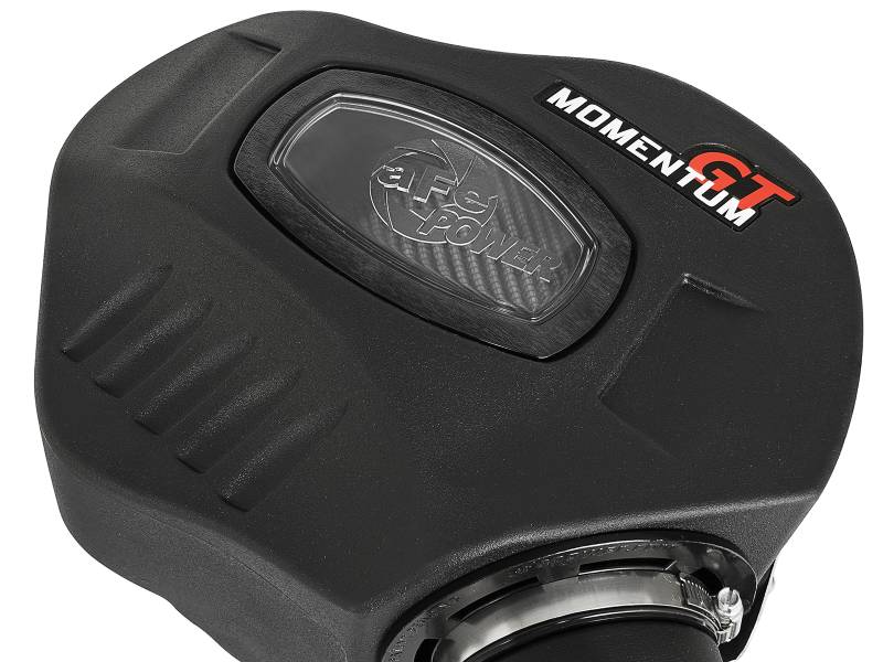 Unique One-Piece High Quality Housing W/ Sight Window: The smooth one-piece (Patent Pending) high quality sealed housing with auxiliary air inlet is used to eliminate the use of multiple-piece housings and ensure the coolest air intake charge available. A large, clear sight window is used for a hassle-free filter inspection and an aggressive style. High Quality Tube: This system uses a high quality plastic CAD designed, dyno-tuned, roto-molded intake tube to achieve maximum power gains while maintaining a perfect fit. Large 3-Layer Performance Air Filter: The Momentum GT intake is designed around an oil-free, large 8" tall 360 degree radial flow performance air filter with 3-layers of progressive finer porosity synthetic media providing maximum convenience. The unique air filter to housing interface (patent pending) allows for maximum filter size which increases the available air volume while simplifying the installation process. Aluminum Heat-Shield Panel: A durable aluminum heat-shield panel is secured on the housing to protect it from the high heat of the turbocharger. Premium Hardware: Premium stainless steel clamps and a silicone bellow coupling are used for strength and durability while also providing the most secure installation available. Momentum GT intakes are designed with fewer parts for a quick and simple installation.