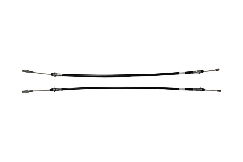 Park brake cables designed to be used on Baer systems with Banksia drum in hat park brake assembly in conjunction with the OE front cable section