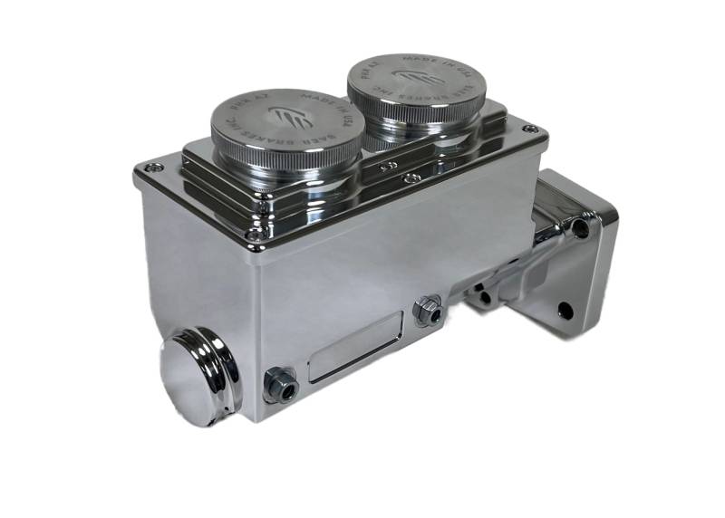 This Remaster master cylinder features a small, compact, 1-piece body machined out of 6061 T6 billet aluminum with a 15/16" bore, left side ports and a 4-bolt mounting flange fitting many early Mopar applications. The billet top is attached with 6 allen screws and has two large billet aluminum, knurled screw-on caps making for easy filling without spillage. The unique outlet port design allows for either inverted flare (w/included removable seats) or banjo style, straight fittings. The Remaster is compatible on most long and short, w/included bullet, boosters or manual brake applications. Optional proportioning valves also available