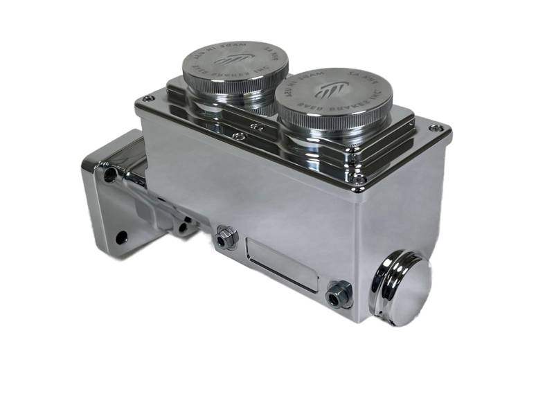 This Remaster master cylinder features a small, compact, 1-piece body machined out of 6061 T6 billet aluminum with a 1" bore, right side ports and a 4-bolt mounting flange fitting many early Mopar applications. The billet top is attached with 6 allen screws and has two large billet aluminum, knurled screw-on caps making for easy filling without spillage. The unique outlet port design allows for either inverted flare (w/included removable seats) or banjo style, straight fittings. The Remaster is compatible on most long and short, w/included bullet, boosters or manual brake applications. Optional proportioning valves also available
