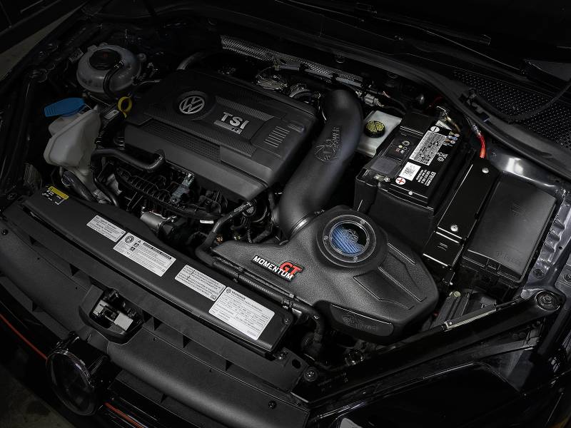 Large Five Layer Performance Air Filter:Momentum’s innovative filter-to-housing interface was built to feature the largest air filter possible. This 7-1/2” tall 360-degree radial flow air filter features a 3-1/2" flange and our pre-oiled Pro 5R media with five layers of progressively finer cotton gauze media for maximum performance. Our Pro 5R media provides your engine with the largest amount of high-flowing air, usually resulting in the highest power gains out of all our filter media options. This media is perfect for street and/or track use. Its inverted top makes for more filter surface area, resulting in longer service intervals.Unique One-Piece Housing:The smooth one-piece sealed housing, constructed of heat-resistant cross-linked polyethylene (XLPE), features our patented/patent-pending filter-to-housing interface. Its innovative design minimizes the total number of parts, making for an easy installation. A clear round sight window, resembling the VW logo, allows for hassle-free filter inspection without having to disassemble your system. The housing incorporates the OE air inlet and features an additional auxiliary air inlet that can be plugged if desired.Dyno-Tuned Intake Tube:This system features a high quality, computer-designed, dyno-tuned intake tube to achieve maximum power gains while maintaining a perfect fit. Its XLPE material is heat soak resistant and extremely durable.Premium Components:Stainless-steel clamps and a silicone coupling are included for strength and durability, while also providing the most secure installation available. Momentum GT intakes are designed with fewer parts for a fast and easy installation.