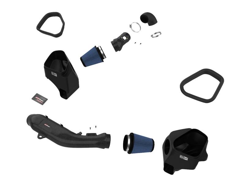 Large Five Layer Performance Air Filters: These 6" tall 360-degree radial flow air filters feature our pre-oiled Pro 5R media with five layers of progressively finer cotton gauze media for maximum performance. This media provides your engine with the largest amount of high-flowing air and delivers the highest power gains in most cases, making it perfect for street and/or track use. Their inverted top makes for more filter surface area, resulting in longer service intervals. Dyno-Tuned Intake Tubes: This system features high quality, computer-designed, dyno-tuned intake tubes to achieve maximum power gains while maintaining a perfect fit. Their durable black XLPE material is heat soak resistant and extremely durable. The longer tube passing in front of the engine features aluminum trim, securing the coolant hose and giving a unique look to your engine bay. Optional carbon fiber trim pieces can be purchased seperately (PN 54-13032CC). One-Piece Housing: The included performance air filters are surrounded by open-element XLPE (cross-linked polyethylene) polymer housings that minimize warm engine air for maximum performance. Their open design allows for easy viewing of the air filters and delivers an aggressive air intake sound. The system utilizes the vehicle's OE air inlet with no additional hardware. They utilize the vehicle's factory air inlet with no additional hardware. Hassle-Free Installation: This is a direct fit intake system that utilizes factory mounting points and requires no cutting or modifications. All necessary clamps, couplings, and hardware are included. Its revolutionary design, featuring our patent pending filter-to-housing interface, uses half the number of parts of a traditional cold air intake system.
