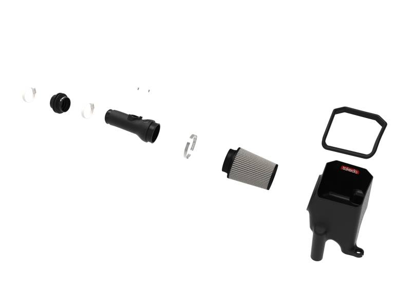 This 7” tall 360-degree radial flow air filter features a 3-1/2" flange and our oil-free Pro DRY S media with three layers of synthetic media for maximum convenience. Its progressive layering provides great filtration efficiency and dust holding capacity, while not requiring the use of oils. This media is best suited for street use. Its inverted top makes for more filter surface area, resulting in longer service intervals. The included performance air filter is surrounded by an open-element XLPE (cross-linked polyethylene) polymer housing that minimizes warm engine air for maximum performance. Its open design showcases the air filter and delivers an aggressive intake induction sound. The upper edge of the housing is finished with a trim seal to help protect against performance robbing heat. This system features a high quality, computer-designed, dyno-tuned intake tube to achieve maximum power gains while maintaining a perfect fit. Its XLPE material is heat soak resistant and extremely durable. This is a direct fit intake system that utilizes factory mounting points and requires no cutting or modifications. All necessary clamps, couplings, and hardware are included. Its revolutionary design, featuring our patent pending filter-to-housing interface, uses half the number of parts of a traditional cold air intake system. This product is not currently CARB exempt and is not available for purchase in California or for use on any vehicle registered with the California Department of Motor Vehicles.