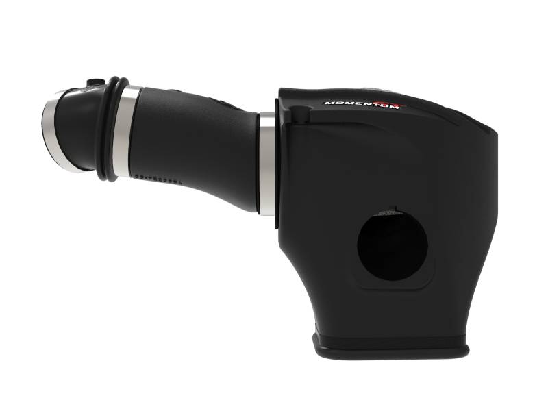The one-piece sealed housing is used to eliminate the use of multiple components and ensure the coolest air intake charge available. A large clear sight window allows for filter inspection without removal of the air box. The roto-molded housing is made out of black cross-linked polyethylene and mounts directly into the factory headlamp cold air inlet location on the driverside to capture the coolest air available from the factory intake tract. This system uses a CAD designed, dyno-tuned, roto-molded intake tube to achieve maximum power gains while maintaining a perfect fit and incorporate the MAF sensor pad. A custom high temperature reinforced silicone elbow coupling is included for easy install with the supercharger breather line. This Momentum GT intake system was designed around the largest filter possible to allow maximum performance and filtration. This cone filter has a massive oval flange and is 9" tall inverted top Pro DRY S filter media. The Pro DRY S performance air filter features 3-layers of progressive f iner porosity synthetic media providing maximum convenience with 100% polyurethane frame for long life and multiple cleaning cycles. Premium stainless steel T-bolt clamps and a reinforced silicone coupler are used for strength and durability while also providing the most secure installation available. Momentum intakes are designed with fewer parts for a quick and simple installation.
