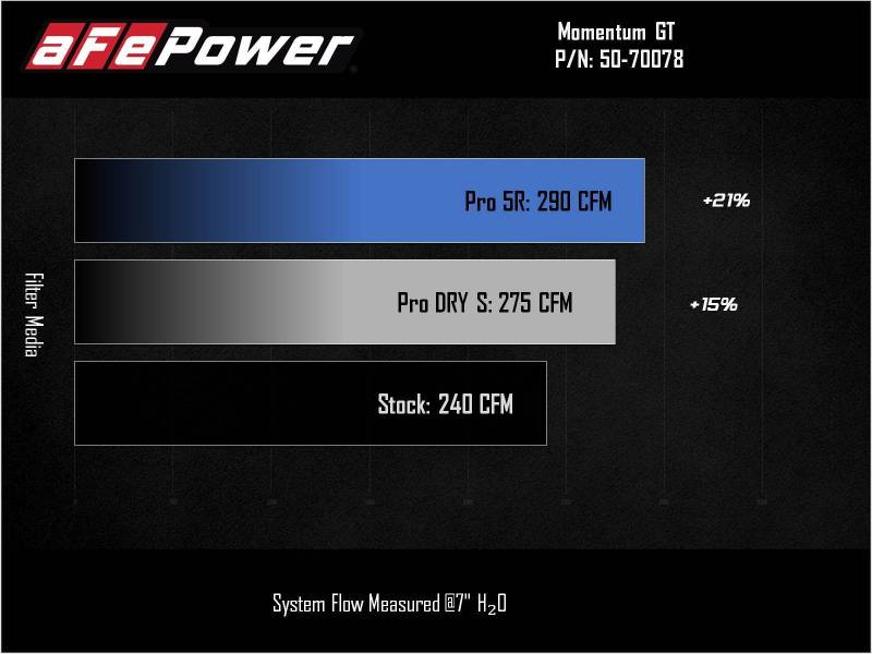 This 360-degree radial flow air filter features our pre-oiled Pro 5R media with five layers of progressively finer cotton gauze media for maximum performance. Our Pro 5R media provides your engine with the largest amount of high-flowing air, usually resulting in the highest power gains out of all our filter media options. This media is perfect for street and/or track use. Its inverted top makes for more filter surface area, resulting in longer service intervals. The smooth one-piece sealed housing, constructed of heat-resistant cross-linked polyethylene (XLPE), features our patented pending filter-to-housing interface. Its innovative design minimizes the total number of parts, making for an easy installation. A large, clear sight window allows for hassle-free filter inspection, without having to disassemble your system. This system features a high quality, computer-designed, dyno-tuned intake tube to achieve maximum power gains while maintaining a perfect fit. Its XLPE material is heat soak resistant and extremely durable. Stainless-steel clamps are included for strength, and a premium silicone coupling allows for ample flexibility. Momentum GT intakes are designed with fewer parts for a fast and easy installation.