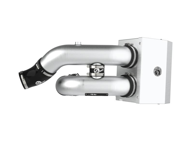 The aFe POWER Pro 5R air filters are pre-oiled and are 8” tall with 360-degree radial flow performance and five layers of progressively fine cotton gauze media for maximum airflow and protection. They provide your engine with the largest amount of high-flowing air, usually resulting in the highest power gains out of all our filter media options. This media is perfect for street and/or track use. Dual one-piece 3-1/2" mandrel-bent brushed aluminum intake tubes direct unrestricted airflow from the massive filters to the turbos for more horsepower and torque. aFe developed this lightweight brushed aluminum heat shield to snap onto the top of the lower half of the factory airbox to provide a hassle-free installation utilizing factory mounting locations. A brushed aluminum cover is used to finish off this intake and add a sense of style to your engine bay. Premium hardware and clamps are used to securely mount the high flow air filters and the intake tubes.