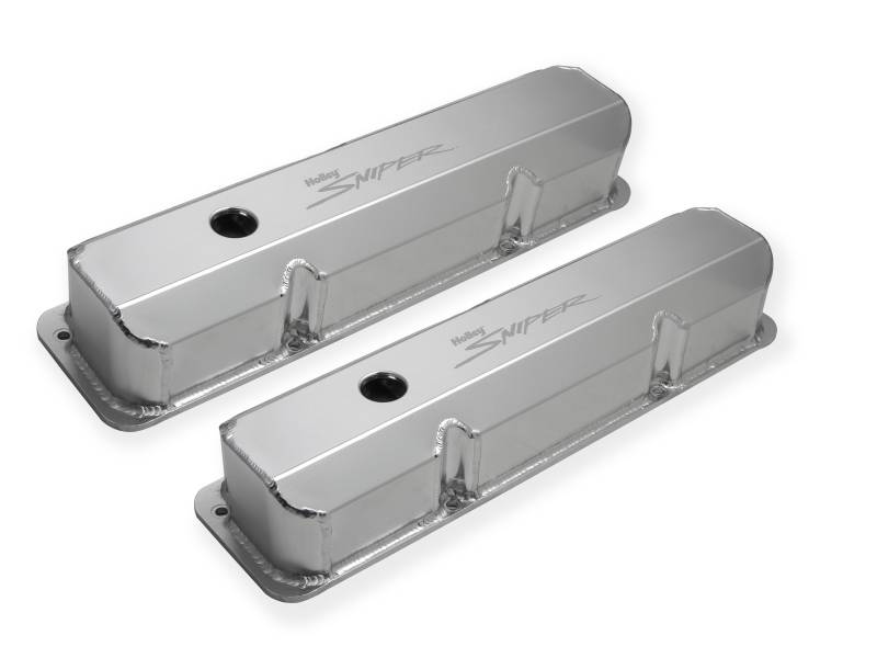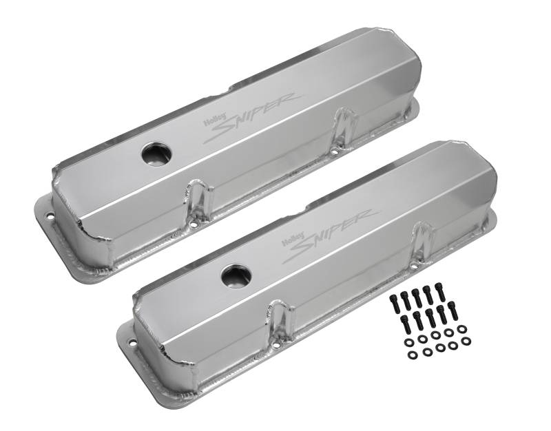 Sniper's fabricated aluminum valve covers gives you an excellent way to add a high-end fabricated look without the high-end price. They offer you a lightweight and tough valve cover for your favorite street, off-road, or racing machine. These valve covers are constructed of 6061 T5 sheet aluminum, precision TIG welded for a proper fit, and feature a laser etched "Sniper" logo on top. They are available in silver anodized or black coated finishes along with various heights to clear most popular rocker arm combinations. All of our valve covers include mounting hardware for quick and simple installation.\nDon't forget, these valve covers look GREAT with our Sniper fabricated aluminum intake manifolds!