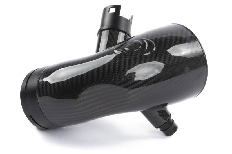 Turbo inlet pipes serve two very distinct, and differing, purposes. On one hand the optimization of a turbo inlet pipe will encourage better turbo efficiency and responsiveness by allowing the turbo to ingest more air by way of an unobstructed and larger volume flow path. On the other, you have a more visceral benefit that some may argue is equally, or even more, important than that of efficiency/flow optimization --- increased sound. No matter which of the distinct purposes is favored, Dinan will deliver on both.\nRegardless of application, a Dinan turbo inlet replaces the weak, and failure prone, plastic factory inlet with a more robust carbon fiber one. CNC machined fittings are utilized to ensure proper fitment and guarantee installation as a direct replacement to the OEM inlet. Beyond material and fitment however are the improvements to the characteristics of the primary element in the system, the pipe itself. The stock turbo inlet has incorporated additional features (multiple in some cases) that introduce flow restrictions and turbulence while also reducing turbo noises. All of which are unwanted but easily rectified by removing the various resonators and enlarging (and optimizing) the path for a more uniform flow. The result is an inlet that delivers not only more air and allows the turbo to be more efficient (work less) but also provides the oft desired amplification to the turbo induction soundtrack.\nNOTE: For B58 'G' chassis 5/6/7/8/X owners that wish to run the Dinan Turbo Inlet (D760-0061) for maximum sound, the appropriate Dinan Intake (D760-0068) as well as the associated Inlet Fit Kit (D763-0100) are REQUIRED. The Dinan Turbo Inlet will NOT mate with the factory intake system.