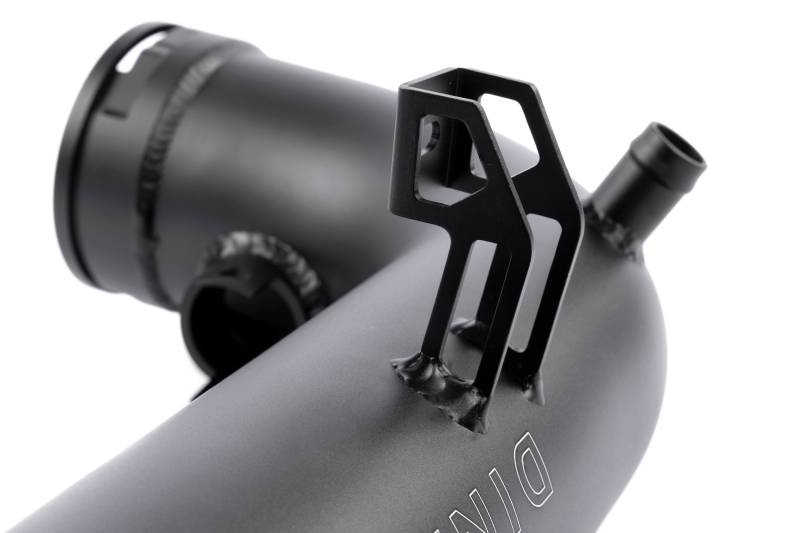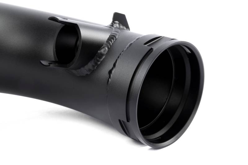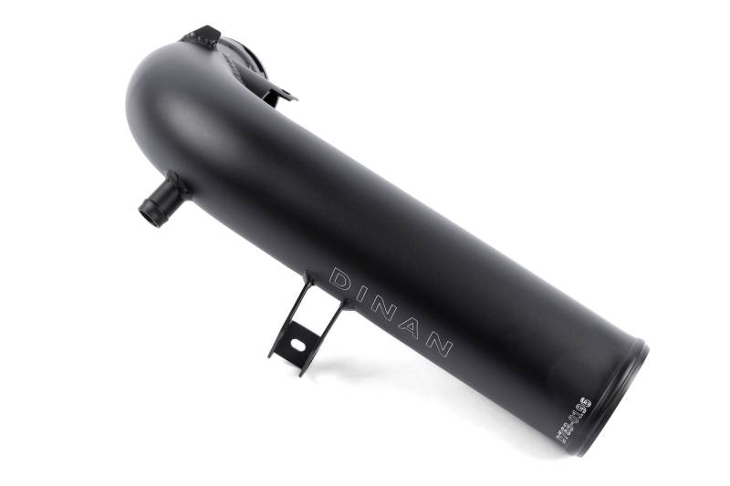 Enjoy the raw, unfettered sounds of the intake/turbo with the Dinan Intake Resonator Delete Pipe! The direct replacement upgrade eliminates the sound deadening element of the factory pipe resulting in the natural voice of the intake/turbo to be noticeably restored.\nBeyond sound suppression the OEM intake resonator also hinders flow with its disruptive multi-directional flow path. This obstructive factory component is instead replaced by 76mm diameter, durable, and lightweight smooth-bore aluminum piping that improves flow for increased turbo efficiency. The black powder coated piping incorporates TIG welded fittings that guarantee seamless fitment with the factory connections in and a nearly concealed aesthetic within the engine bay. Whether or not you are running completely stock or with a variety of 3rd party modifications the Dinan assembly will fit right in. Short of the tempered, outlined, DINAN logo peeking out from just underneath the cowling you will be hard pressed to even realize it's there - that is, until you hear it.