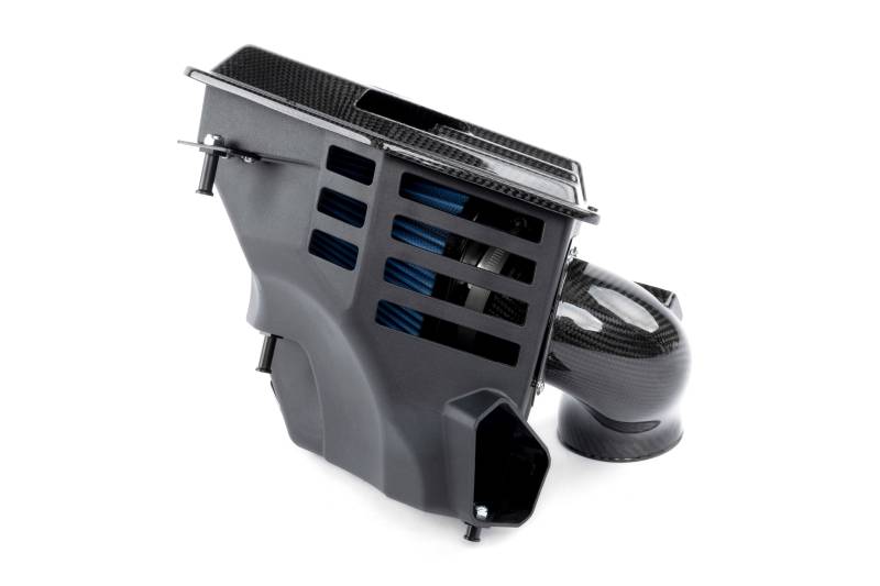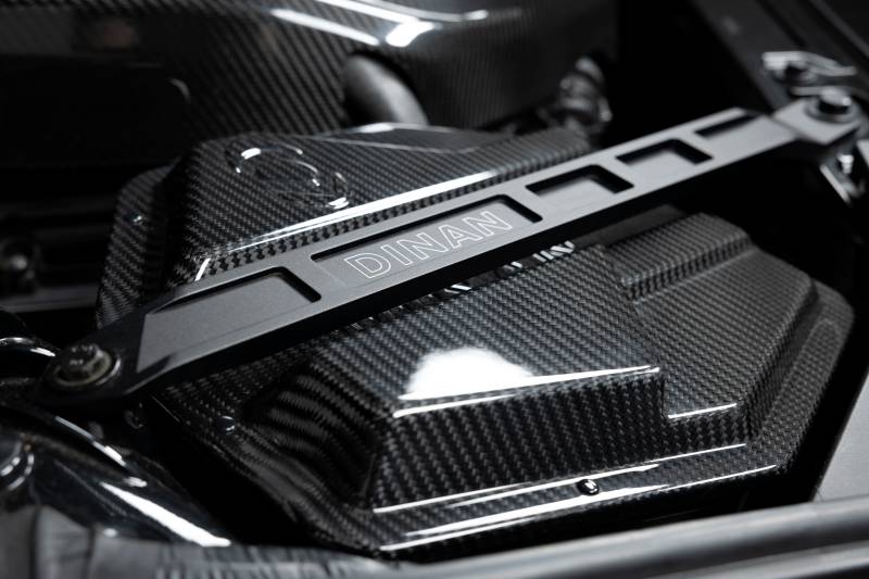 Both the Toyota GR Supra as well as the BMW Z4 are their respective brands answer to the modern 2-seater sports coupe delivering enhanced driving enjoyment in a compact and stylish frame. With aggressive organic lines used unabashedly throughout, they are unapologetic in their outward style to the point of nearing brashness. This character is limited to driving dynamics and external appearance however, with both the sound and under hood visuals not matching the colorful outer demeanor. The factory air box in particular is an uninspired design, albeit functional, and leaves substantial room for improvement in terms of flow and resulting power gains. It also purposefully includes an intake resonator whose sole purpose is the elimination of turbo/intake noises - the same noises that those in the performance world relish. The Dinan carbon fiber intake for the platform rights these wrongs and delivers an intake capable of flowing 58% more air than the stock system resulting in improved throttle response, additional power and the elimination of a potential roadblock when opting to pursue a high-powered build (upgraded turbo, fueling, etc). At the same time revealing a more aggressive, sporty carbon fiber appearance, and an increase in sound courtesy of the removal of the intake resonator and implementation of a semi-open design.\nTo achieve the gains in flow that the Dinan intake delivers, the entire lower box of the system, and not just the lid, has been reworked and enlarged in an effort to make use of as much of the available real estate as possible within the engine bay. In turn, this allows a 40% larger, custom, free flowing filter to be housed within and maximum flow to be realized. However, a secondary inlet has always been desired by Dinan to effectively fill the volume of the enlarged air box and increased filter surface area. This desire led to a multitude of experiments being conducted on the effectiveness of a possible open-air inlet in the system. With different shapes, locations, and sizes of openings being tested, the goal was to ensure that the added secondary inlet did not cause any unwarranted side effects such as an increase in air temps in the system. This is commonplace with open-air intake systems where overheated engine bay air is employed in the intake tract. The results of these tests showed that the patterned openings present in the final iteration of the box located on the opposite side from the engine provided a perfect balance of additional volume to assist the factory inlet all the while not causing an increase in turbo inlet temperatures. This was the case regardless of testing conditions (single/multiple gear pulls, constant speed, 0-100mph runs, etc.).\nWith more air being pulled into the system, throttle response is improved, and additional power is realized in the form of max gains of +13 WHP / +14 lb-ft of torque on an otherwise completely stock vehicle. Beyond stock or basic bolt-on equipped vehicles, the Dinan intake would expand the potential of the platform's power ceiling. Put simply, those striving to build a more potent and robust solution, complete with turbo and fueling upgrades, will be allowed to maximize the results without worry of the intake system being a limiting factor. Regardless of the level of the build, the secondary air inlets, as well as the sound slot present on the lid, allow the intake system to be more audible so the turbo spool and BOV can be appreciated. A stark difference from Dinan's traditional fully sealed systems where induction noise is not nearly as recognizable. Not to be outdone by the increased power and sound, the outwardly visible system is made of immaculate 2x2 gloss twill carbon fiber resulting in vastly improved under hood appeal. Joined by the aluminum Dinan strut braces and matching carbon fiber engine cover, the engine bay instantly becomes equally as showy as the exterior. A unified style, inside and out, with a bit of turbo attitude.