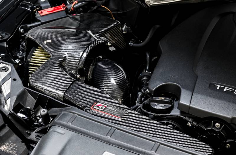 Break the mold with AirGate . The AirGate Carbon Intake for the B9 A4/A5 The AirGate Carbon Intake allows options for those seeking more volume from their intake when under boost. Want to hear more turbo inductions sounds from within the cabin? Go lidless. Prefer to keep it a bit more stealthy? Simply bolt the AirGate lid in place with a few turns of two easily-accessible hex screws. Constructed of genuine 2x2 carbon fiber with a UV-stabilized resin and clear coat, the AirGate Carbon Intake mounts securely to the stock location and integrates with the factory ducting perfectly via the AirGate’s floating airbox inlet. The S-FLO Filter The included AWE S-FLO Filter is designed specifically for this air box to be easily serviceable and to maximize airflow. This increase in airflow unlocked maximum gains of 12 hp and 9 lb-ft of torque at the wheels. The combination of carbon fiber airbox and included S-FLO Filter makes for a more aggressive intake note, with an intoxicating turbo spool sound. Please Note: AWE AirGate Intakes are for Racing Use Only.