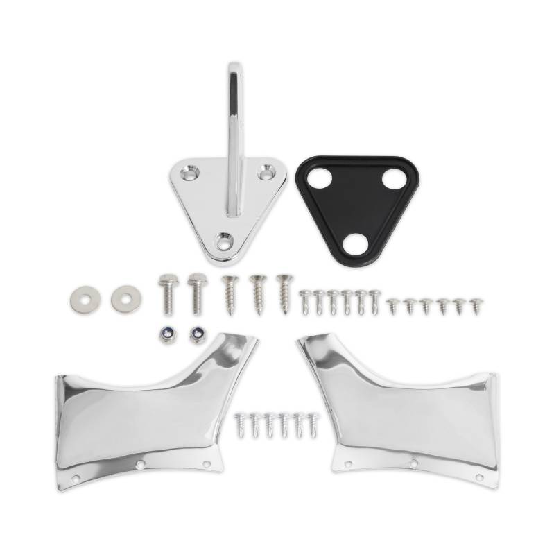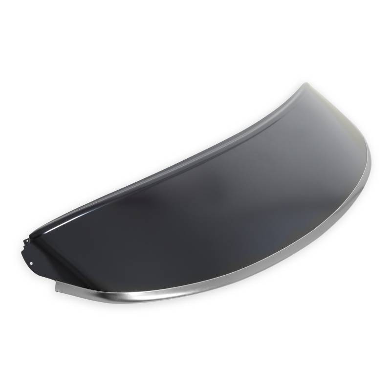 This is a reproduction of the original Fulton Model 800 style sun visor windshield visor so popular on 1954-1955 First Series trucks. A windshield visor was a very popular accessory helping shade the driver's eyes from the sun in an era when tinted windshields weren't really around. In keeping some of the sun's rays out of the interior it can also help keep the truck a little cooler on hot summer days. This part is made of heavy gauge steel with a black primer coat. It comes complete ready to assemble and install including the trim that runs along the front lip of the visor.