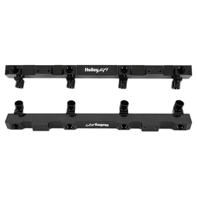 Dress up and open up your ZL1, CTS-V, or ZR-1 with Holley Hi-Flow Fuel rails. The bright dip, black anodized rails come with laser etched EFI logo for long-lasting good looks and are a direct replacement for the rails on the factory blower or any other supercharger that was designed to use OEM rails. For perfect sealing, the 534-285 kit has been machined to accept -8 (3/4-16) ORB ports which use O-ring fittings. But, to utilize your factory fuel line quick-connect, just add P/N 534-211 adapter kit for a quick and easy install.\nThe included brackets are for factory-height injectors (33.60mm).