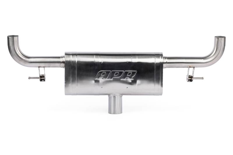 The APR Catback Exhaust System personalizes your vehicle's looks, sound and performance. Beautifully hand-crafted T304-stainless-steel components adorn the system with stunning TIG-welding throughout. Our straight-through brushed-finished mufflers smooth the exhaust note to a deep growl, without adding restrictions or rasp. Strong high-quality bracketry and OEM-style clamps hold the system steadily in place, making the install or removal a snap, and fitment simple, yet precise. 3" (76mm) mandrel-bent exhaust paths provide an ultra-smooth path, steadily feeding exhaust gasses out of the dual 2.5" (63.5mm) exit pipes, while looking tidy from under the rear bumper. Finally, removable 4" (102mm) polished slash-cut exhaust tips finish the system, adding a classy motorsport-inspired touch to the rear of the vehicle.