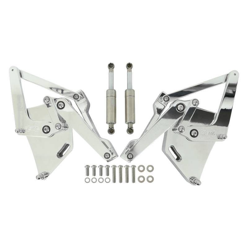 Brothers Trucks Billet hood hinges are CNC machined to perfection out of 6061-T6 billet aluminum. All pivot points have a sealed bearing for a smooth operation which allows for easy hood opening and closing. All hinges come complete with stainless steel mounting hardware and are a perfect addition to your ride. Sold as a pair.