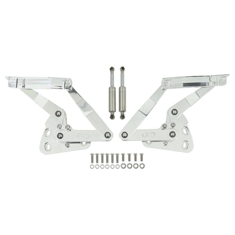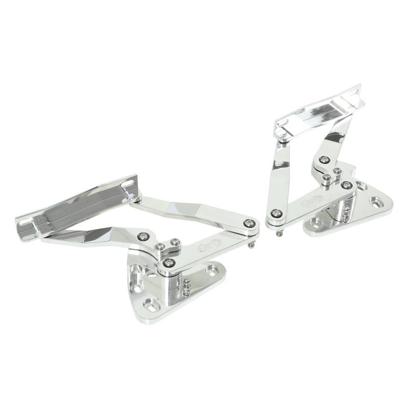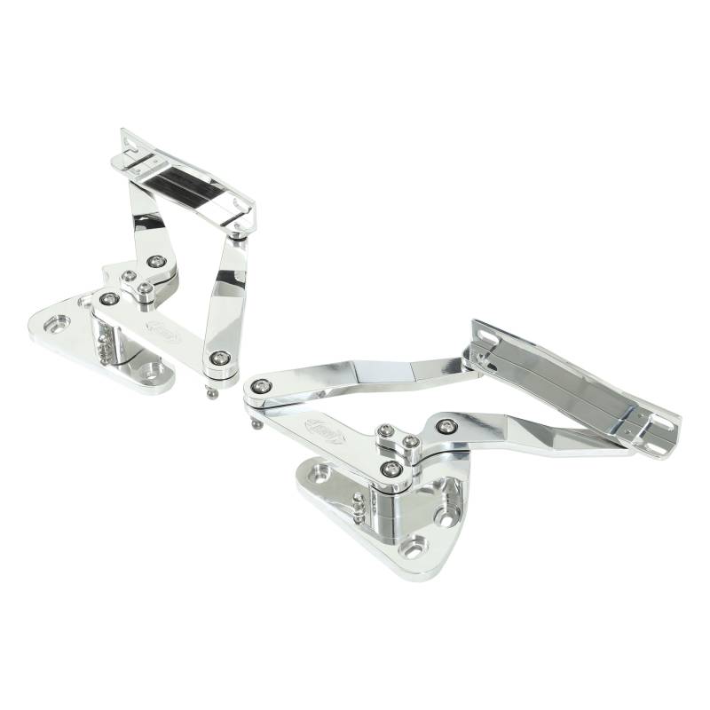 Brothers Trucks Billet hood hinges are CNC machined to perfection out of 6061-T6 billet aluminum. All pivot points have a sealed bearing for a smooth operation which allows for easy hood opening and closing. All hinges come complete with stainless steel mounting hardware and are a perfect addition to your ride. Sold as a pair.