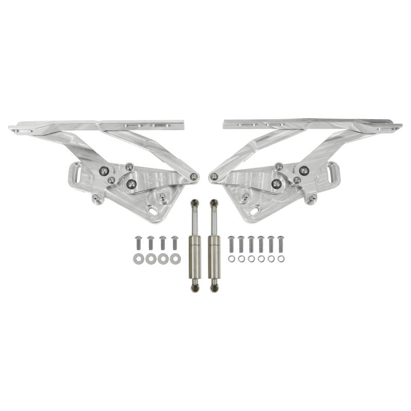 BROTHERS Trucks Billet hood hinges are CNC machined to perfection out of 6061-T6 billet aluminum. All pivot points have a sealed bearing for a smooth operation which allows for easy hood opening and closing. All hinges come complete with stainless steel mounting hardware and are a perfect addition to your ride.