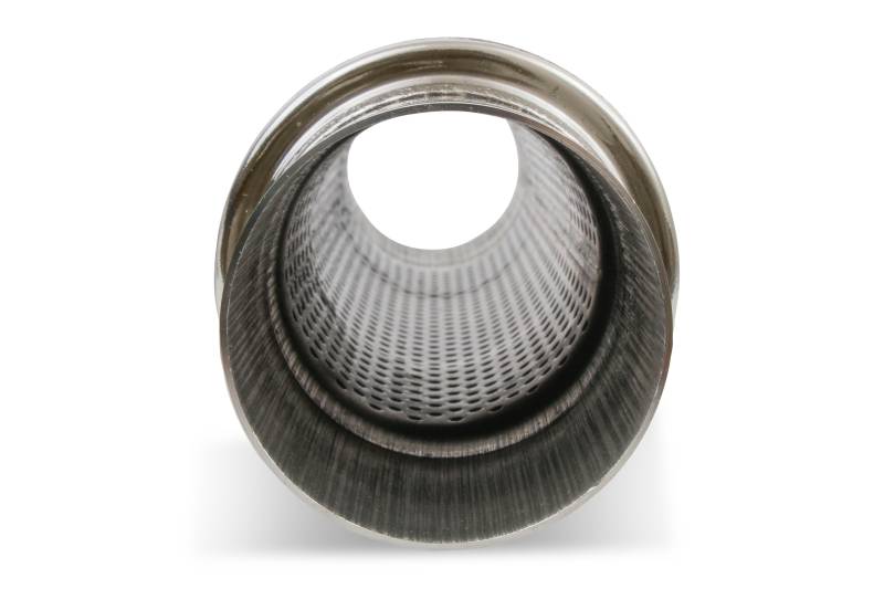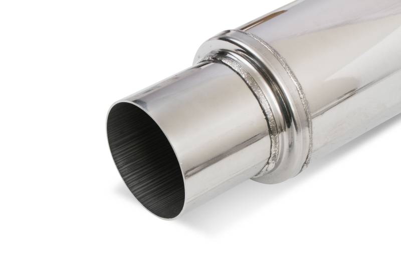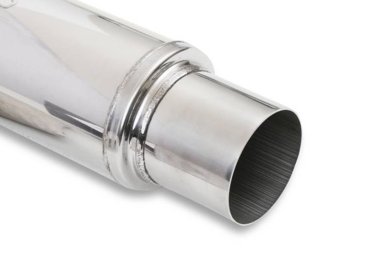 1 The Flowmonster series of absorption style mufflers deliver a moderate tone for the enthusiast looking for a deeper, more aggressive exhaust note than most OE (Original Equipment) mufflers, unlike the racey exhaust note associated with "chambered" style mufflers.\n3 Interior construction features 3.50 inch "straight-through" perforated 409 stainless steel tube surrounded by high-temperature sound absorption packing material which helps to deliver a deeper, mellower exhaust note. The internal design is reversible allowing the flexibility to be installed in either direction to best accommodate fitment with the intended vehicle. The fully MIG-welded 409 Stainless Steel material is embossed with the "FLOWMONSTER" logo on the case.