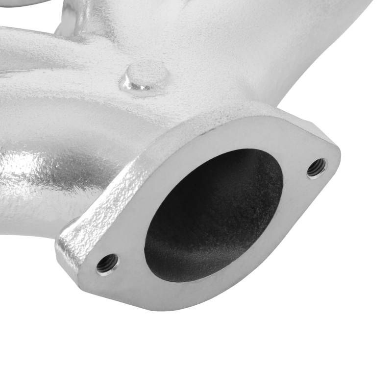 For applications or projects where our existing LS and LT swap manifolds don't quite fit or you need an exit point further forward in the engine bay to avoid the steering shaft, a starter, or some other component, our new "center dump" cast iron swap manifolds are the solution. Cast out of the same Hi-Silicon-Moly Ductile Iron as our 8502HKR and BHS516 lineup, it will be tough to find a more durable, streamlined, and quiet exhaust option. Available in natural cast, silver ceramic, or black ceramic finishes, these manifolds are offered with flanges, gaskets, and flange hardware for connecting to our lineup of adapter pipe kits. This not only allows for the easy addition of catalytic converters but also makes it'simple to connect to our many exhaust system options.