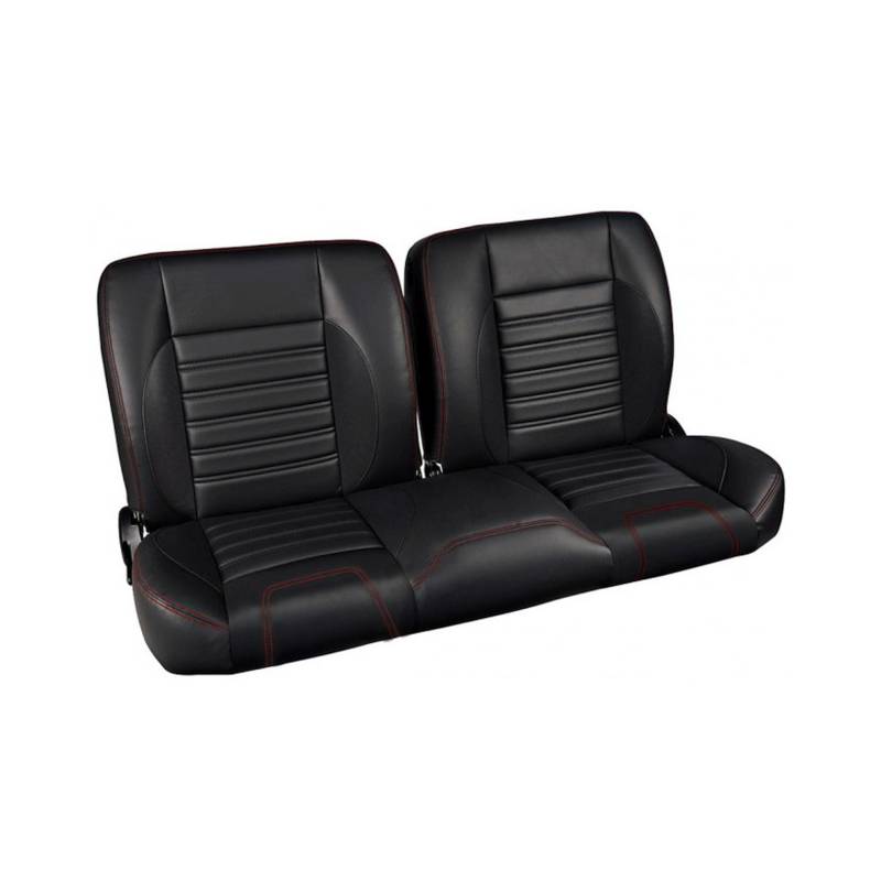 Brothers trucks sport pro-classic split-back bench is a custom seat specifically designed for your classic truck. Add style and performance to your interior with this low-back sport bench seat. Constructed of a tubular steel frame with reclining mechanism. The high-density seat foam has molded sport side bolsters for support. Covered in premium black vinyl. 55-inch length