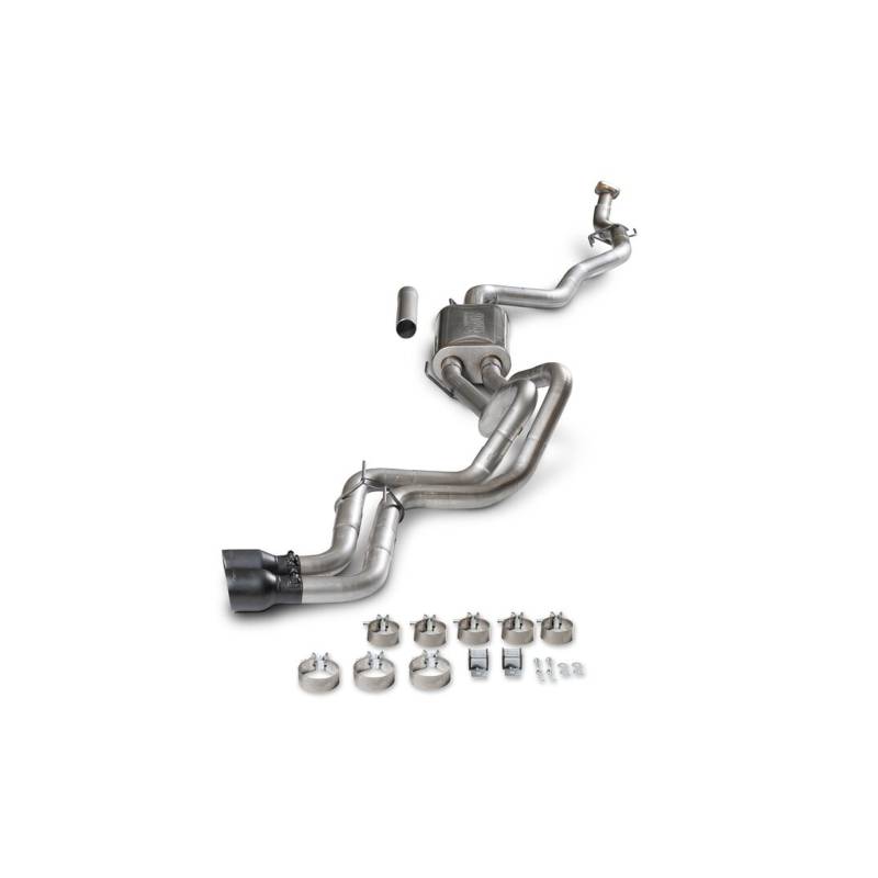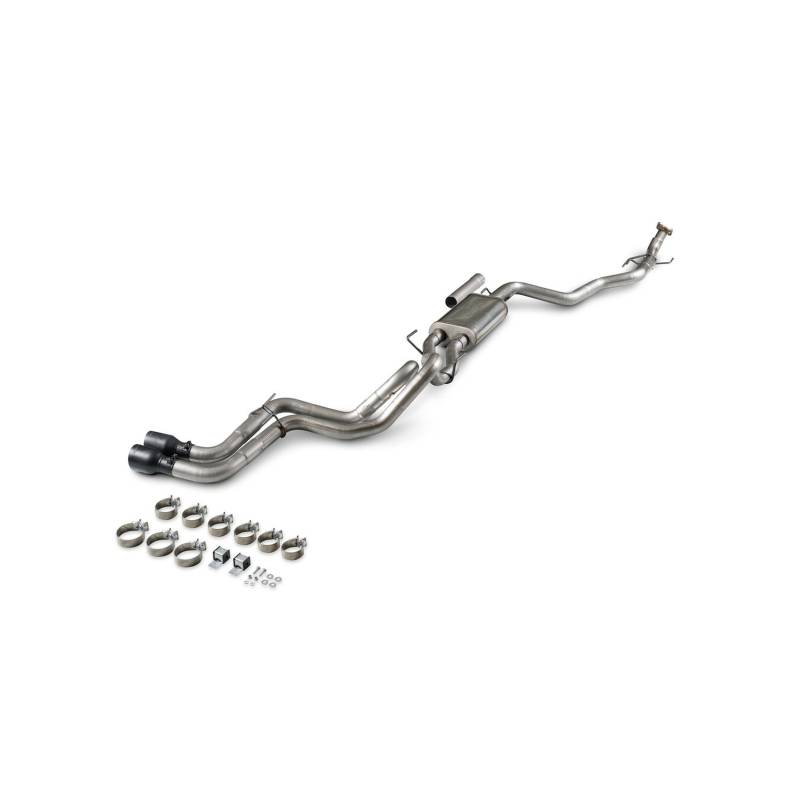 Flowmaster's® Flow FX Cat-back exhaust system is for the 2024-2026 Toyota Tacoma with the 2.4-liter engine. This performance exhaust system fits both 2/4 Wheel drive models and is manufactured from 409 stainless steel for years of trouble-free service and performance. Features include a 3.00-inch inlet pipe leading into a 409 stainless steel Flow FX series "straight-through" muffler for great sound and maximum performance. The dual 2.5-inch mandrel-bent tailpipes exit out behind the rear driver side tire and are finished off with a large 4.0-inch diameter black cramic coated 304S stainless steel tips, giving your Tacoma that custom look and better ground clearance than the stock tailpipe. Max dyno gains of 11 hp and 17 lb-ft at the rear wheels. The system uses all the factory hanger locations and connections for an easy installation that you can do at home. Includes installation instructions and all necessary hardware. Backed by Flowmaster's Lifetime Limited Warranty.