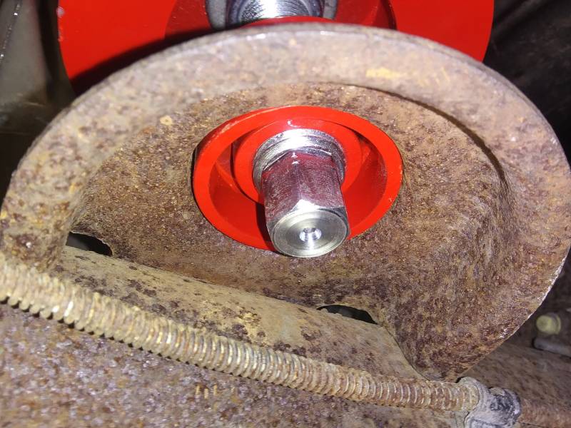 UMI’s competition 3rd Gen F-Body front weight jack system replaces the factory spring with a tough, adjustable weight jack bucket and a custom wound ultra-premium performance spring. This kit gives up to 2-½” lowering from factory height. The adjustment bucket features an extra thick ¼” base to resist bending under the force of competition. Ultra-smooth ride height adjustment with our acme bolt and industry exclusive thrust bearing system means easier ride height changes at the track. Bending potential is reduced by the thrust bearing system which also helps spread the load over a large surface area. Custom designed 1050 lb/in springs offer a firm ride suitable for auto-x, road race and back road corner carving as well as spirited daily driving (if you don’t mind a firm ride). The 2065-3 kit gives the ride height adjustability of a coilover while still allowing maximum tire clearance around the strut. Works great with the UMI Afco strut, Viking strut or Koni strut. This kit is available in UMI gloss black or red powder coat. 100% manufactured, tested and race proven in the USA.\nFeatures:\nGreat choice for competition use.\nStrong ¼” thick construction, CNC laser cut USA steel.\nAcme thread and thrust bearing for easy ride height adjustment.\n0 to 2-½” lowering.\nAdjustment completed easily with ratchet and ¾” socket.\nAnti-rotation tab.\n1050 lb/in premium racing spring.\nAllows independent front corner weight tuning.\nMaintains factory clearance around the strut and allows maximum tire and wheel width.\nPairs nicely with UMI Afco, Viking, or Koni strut. Also works with factory strut.\nFits UMI K-member and Factory K-member. May not work on other brands.\nManufactured, tested and race proven in the USA.