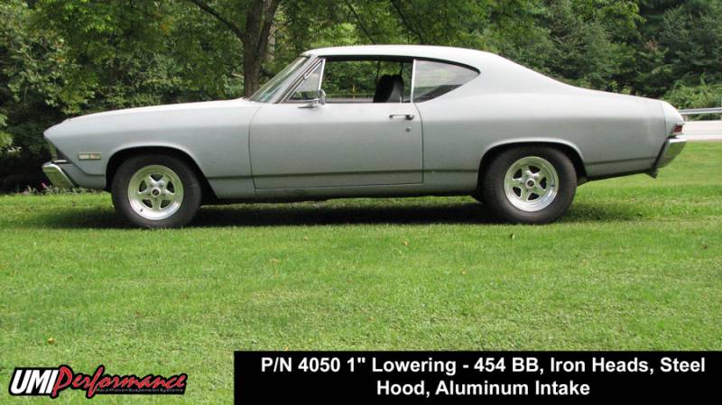 A spring is a spring right? Wrong! When UMI chose to manufacture our own line of springs we went all out. Designed in conjunction with a leading Sprint Cup chassis engineer, these springs are the best in the business. Our springs are wound from 5160 CrSi premium wire and feature a linear 530 lb/in rate. The 4050F’s are stiffer than stock to provide increased performance with decreased body roll and a lower center of gravity. These springs are suitable for Auto-x and Pro-Tour applications as well as corner carving/cruising. The ride height is engineered for a 1” lowering with standard SBC, aluminum head and intake Big Block and Pontiac 400 as well as LS power (lightened cars may require spring trimming). The 4050F’s are also suitable for full weight Big Block applications when nose down rake is desired. They have a tough black powder coat finish and UMI proudly manufactures these premium quality springs in the USA.\nAs an industry leader in the muscle car suspension industry, UMI is proud to bring you the best spring in the business.\nConsistent rates and only the best materials (premium Chrome Silicon wire) ensure your cars sits properly for years to come.\nLinear spring rates (530 lb/in front, 130 lb/in rear) provides a firm yet comfortable ride and incredible handling.\nNo more floating feeling.\nSuitable for Pro-Tour, Auto-x and general cruising.
