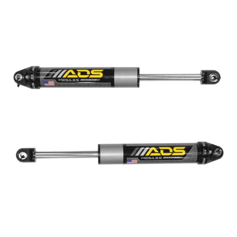 Upgrade your Silverado 1500, Ram 1500/2500, Ford F-250/F-350, or Toyota Tacoma, Tundra, and 4Runner with our direct-fit, OEM replacement suspension solutions. These premium shock absorbers are designed for maximum durability and performance, featuring a UV-stable ceramic powder-coated steel shock body and black anodized billet aluminum top and bottom caps. Hard-chrome plated steel shock shafts provide superior corrosion resistance, while spacers machined from 304 stainless steel further enhance durability. Filled with premium full synthetic shock oil, the shock absorber incorporates an internal floating piston (IFP) to ensure consistent damping performance, improved responsiveness, and increased longevity. The large bore 2.50-inch shock body increases fluid capacity, effectively resisting shock fade to boost off-road performance. Fully rebuildable, this shock absorber is the ultimate upgrade for enhancing your vehicle's suspension system.\nNow that you’ve got the look and performance with your New ADS Mesa shocks, don’t overlook the other off-road must-haves! Round out your build with industry best exhaust from Flowmaster, custom shifters, and heavy-duty differential covers from B&M.