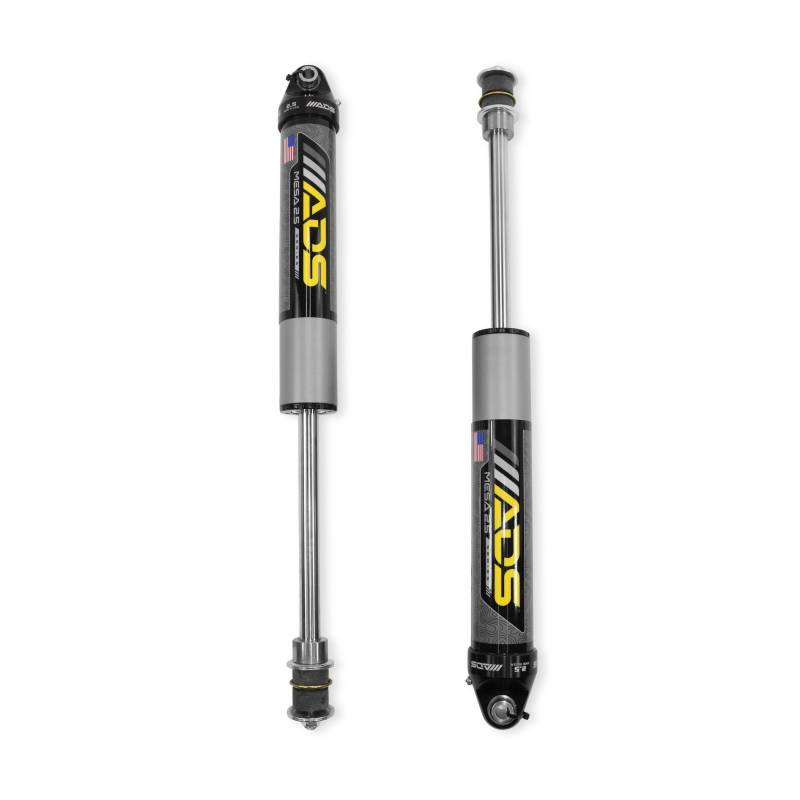 Upgrade your Silverado 1500, Ram 1500/2500, Ford F-250/F-350, or Toyota Tacoma, Tundra, and 4Runner with our direct-fit, OEM replacement suspension solutions. These premium shock absorbers are designed for maximum durability and performance, featuring a UV-stable ceramic powder-coated steel shock body and black anodized billet aluminum top and bottom caps. Hard-chrome plated steel shock shafts provide superior corrosion resistance, while spacers machined from 304 stainless steel further enhance durability. Filled with premium full synthetic shock oil, the shock absorber incorporates an internal floating piston (IFP) to ensure consistent damping performance, improved responsiveness, and increased longevity. The large bore 2.50-inch shock body increases fluid capacity, effectively resisting shock fade to boost off-road performance. Fully rebuildable, this shock absorber is the ultimate upgrade for enhancing your vehicle's suspension system.\nNow that you’ve got the look and performance with your New ADS Mesa shocks, don’t overlook the other off-road must-haves! Round out your build with industry best exhaust from Flowmaster, custom shifters, and heavy-duty differential covers from B&M.