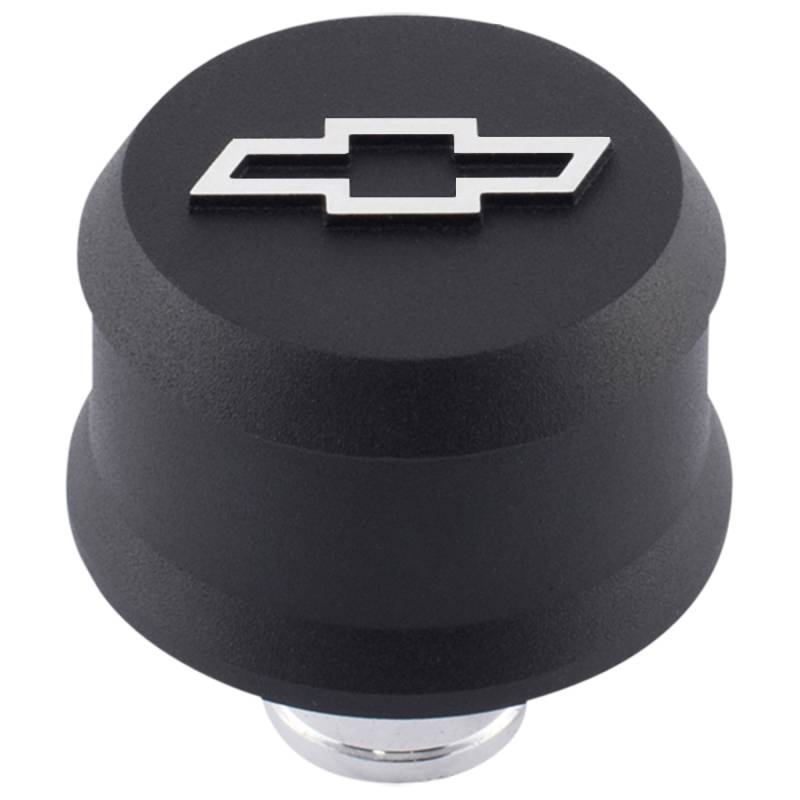 Slant-Edge Aluminum Breather Cap No more stamped steel breather caps for aluminum valve covers! Complete your engine dress-up look with a breather cap that actually matches your look! These new Slant-Edge aluminum push-in breather caps are available in five different finishes, and with just about every Bowtie emblem configuration imaginable: raised and milled, recessed with inlaid paint, the unique recessed/raised blackfield, and even no emblem at all. The vivid 3D Bowtie emblem gives this 2.5 inch diameter breather cap a bold clean look that