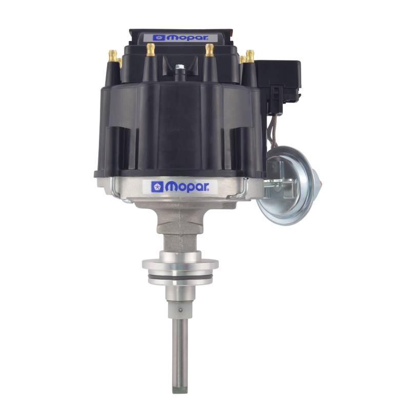 This 100 percent new high-performance distributor produces a 50,000 volt spark through 7,500 RPM. Easy 1-wire hookup, low-saturation ignition module, premium cap with brass terminals, and high-power coil! Each high performance, factory set distributor, has a retro-style Mopar Emblem prominently displayed beneath the black cap. Fits Chrysler 273-318-340-360 Small Block Engines.