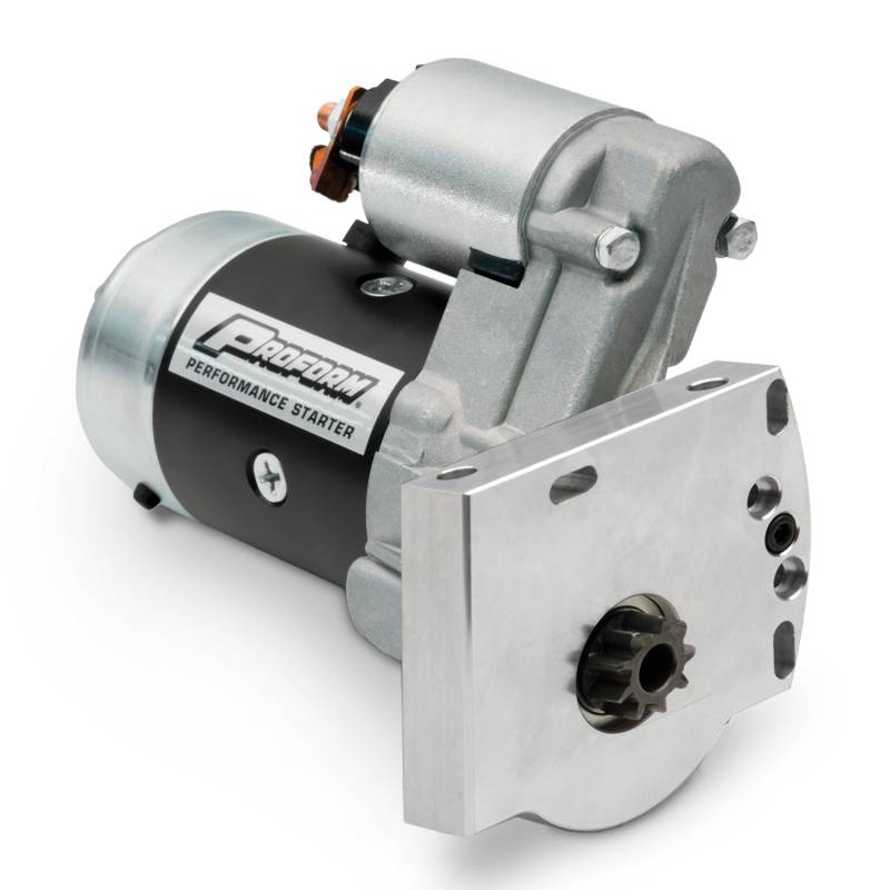 High-Torque Starter High-torque, gear-reduction design. 100% NEW, not rebuilt. Offset design results in more clearance between the oil pan and the starter, and can be rotated for additional chassis clearance. The high-torque, high-output motor spins the engine over faster than stock starters, delivering 40-50% more cranking power. 3.75-to-1 sealed gear-reduction drive and full ball bearing construction. Includes shims to set pinion-gear engagement (when necessary). Approved by all leading sanctioning organizations. Not compatible with Pontiac GTO engine configuration.