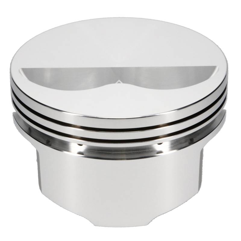Piston Set, 4032, Flat Top, 4.040 Bore, 1.560 CD, 0.927 Pin, Set of 8. Born from the rich racing experience of JE Pistons, the Sportsman Racing Products (SRP) piston line proudly bridges the gap between high-quality forged piston performance and affordability. Forged from strong, 4032 aluminum alloy material, SRP pistons are designed and manufactured to reduce machining costs without sacrificing strength or performance characteristics. These pistons are the perfect option for someone building a mild to moderate performance engine on a sportsman budget. As with all JE Pistons products, SRP pistons are made 100% in the USA. Forged in the USA using 4032 aluminum, yielding tensile strength and minimal thermal expansion Dedicated forging helps optimize strength and weight throughout the piston design Perfect for street/strip applications Forced pin oiling for improved pin lubrication Made 100% in the USA