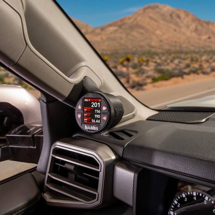 Key Features: Designed specifically for Banks iDash. Optimized gauge face orientation. Does not obstruct driver view. OE Grade Polyamide-12 construction, durable to last life of truck. Premium Textured Exterior Finish Hides wires for OE look