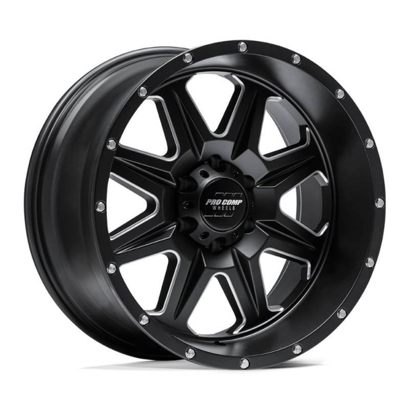 Recon Satin Black Milled 20x10 6x135 4.75BS Offset -18mm Cap P/N 503434242 The Pro Comp Recon is designed using State-Of-The-Art Low-Pressure-Casting Technology providing unsurpassed wheel strength, style and value. Pro Comp Alloys are amongst the highest load rated wheels in the industry, ranging from 2500 LBS to 3650 LBS per wheel. Pro Comp Alloy Wheels combine a light weight, head turning style available in a wide range of finishes and offer The Pro Comp Promise; the only transferable warranty in the industry.