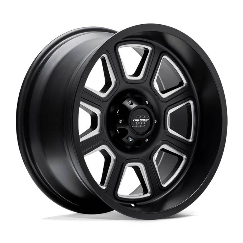 Gunner Satin Black Milled 20x10 6x5.5 4.75BS Offset -18mm Cap P/N 503434242 The Pro Comp Gunner is designed using State-Of-The-Art Low-Pressure-Casting Technology providing unsurpassed wheel strength, style and value. Pro Comp Alloys are amongst the highest load rated wheels in the industry, ranging from 2500 LBS to 3650 LBS per wheel. Pro Comp Alloy Wheels combine a light weight, head turning style available in a wide range of finishes and offer The Pro Comp Promise; the only transferable warranty in the industry.