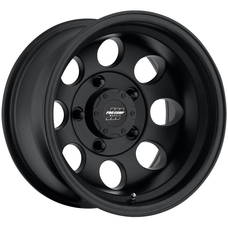 Vintage Matte Black 16x8 5x5 4BS Offset -12mm Cap P/N 8327041 The Pro Comp Vintage is designed using State-Of-The-Art Low-Pressure-Casting Technology providing unsurpassed wheel strength, style and value. Pro Comp Alloys are amongst the highest load rated wheels in the industry, ranging from 2500 LBS to 3650 LBS per wheel. Pro Comp Alloy Wheels combine a light weight, head turning style available in a wide range of finishes and offer The Pro Comp Promise; the only transferable warranty in the industry.