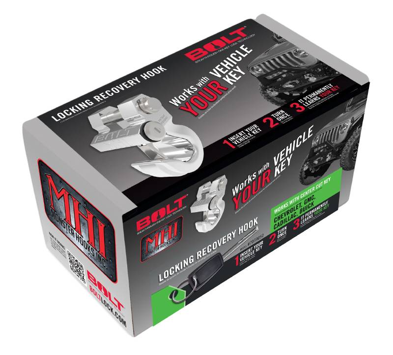 GM Center Cut Locking Recovery Hook The BOLT Locking Recovery Hook secures Standard 7/8" Bumper Tabs, Winches and Recovery Ropes and Work With your Vehicle Ignition Key Limited Lifetime Warranty Weatherproof Provides safe and secure recovery ability Rated for 10,000 pounds
