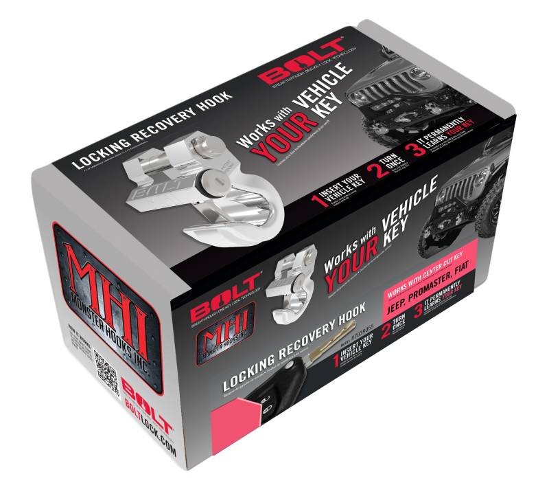 Jeep Center Cut Locking Recovery Hook The BOLT Locking Recovery Hook secures Standard 7/8" Bumper Tabs, Winches and Recovery Ropes and Work With your Vehicle Ignition Key Limited Lifetime Warranty Weatherproof Provides safe and secure recovery ability Rated for 10,000 pounds