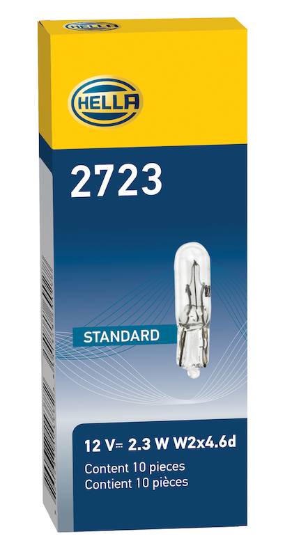 HELLA Turn Signal Light Bulb 2723 Safety travels with you - bulbs from HELLA. When you are on the road with your vehicle, everything revolves around optimal visibility. One of the decisive factors is the absolutely reliable functionality of the lamps. HELLA has the right technology for every case here - which is why HELLA brings a strong range of bulbs to the road. All our bulbs, from standard to Xenon, reliably deliver maximum performance at all times. Those who focus on safety will always find exceptional and tested quality for every vehicle at HELLA. For your safety in road traffic. Low 2.3W usage means efficient energy consumption. Compact T1.5 size fits various instrument panels effortlessly. W2X4.6D base allows for quick and easy installation. Durable 12V design ensures long-lasting performance.